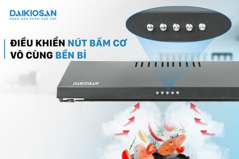 Với bảng điều khiển cơ ngay tầm mắt, người dùng dễ dàng sử dụng máy hút mùi Daikiosan DKH-00007 qua nhiều nút bấm tiện lợi: Tắt/mở máy, tùy chỉnh tốc độ nhanh - trung bình - chậm và bật/tắt đèn.