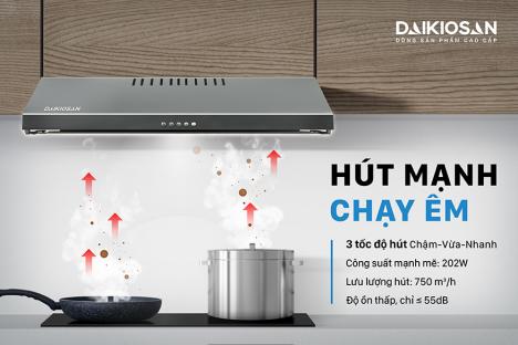 Bên cạnh motor đồng hoạt động siêu bền bỉ, máy hút mùi Daikiosan DKH-000007 có công suất 202W, cho lưu lượng hút đạt 650m3/h, đảm bảo hút sạch mọi loại mùi thức ăn, ám khói... khó chịu trong gian bếp giúp tạo ra bầu không khí luôn sạch sẽ, mát mẻ.