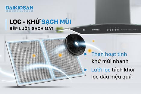Máy hút mùi Daikiosan DKH-000008 khử mùi bằng than hoạt tính và lưới lọc
