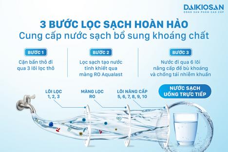 Máy lọc nước RO Daikiosan DSW-42010H sử dụng công nghệ lọc RO hiện đại cùng hệ thống 10 cấp sẽ tạo ra nguồn nước sạch uống trực tiếp và cung cấp đầy đủ khoáng chất cho cơ thể.